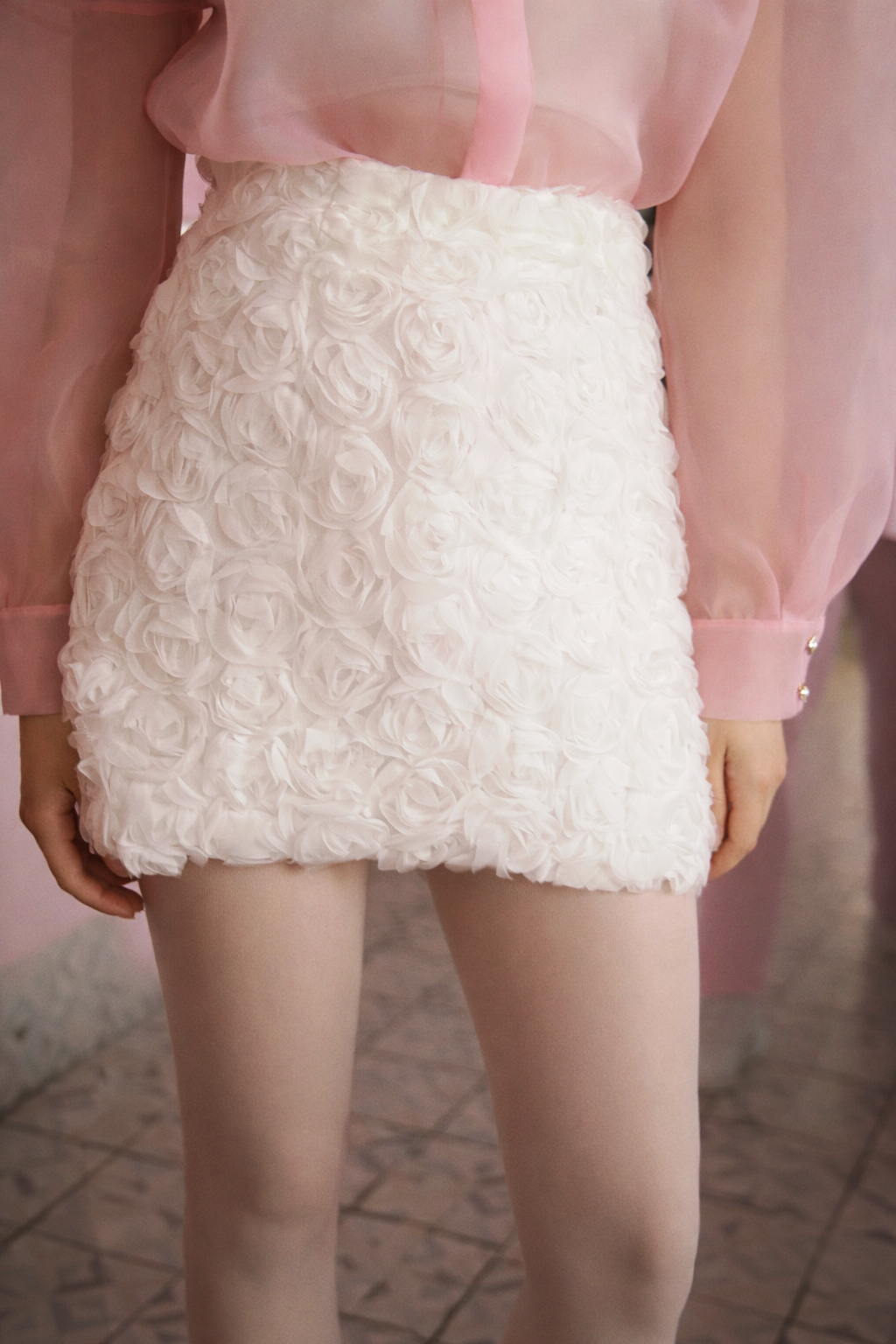 Міні-спідниця з об’ємними трояндами — легка, ніжна та ефектна. Додає образу романтичності та об’єму.